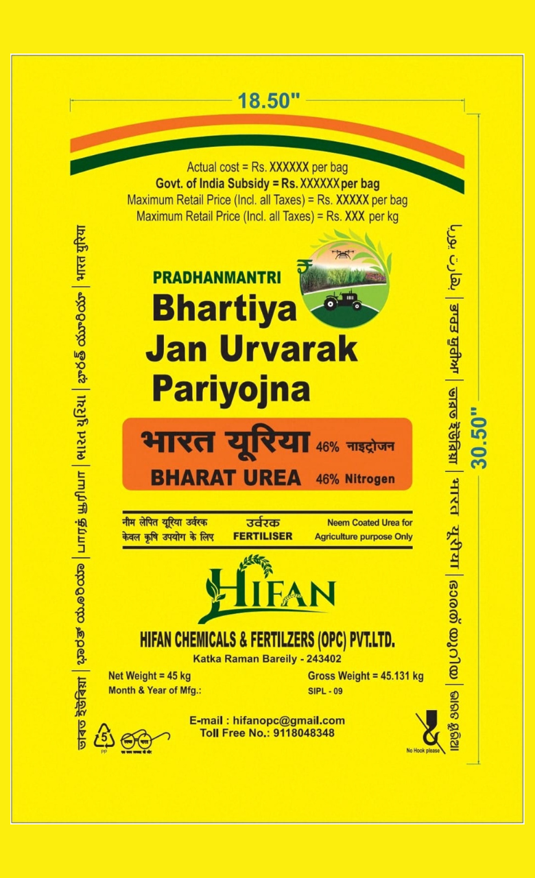 Bharat Urea (Neem Coated Urea 46% N) is supplied under the Pradhanmantri Bhartiya Jan Urvarak Pariyojna, ensuring farmers across India get access to high-quality, affordable fertilizers. With 46% Nitrogen content